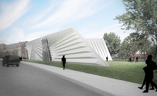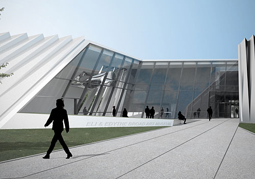 扎哈-哈迪德(Zaha Hadid)為密歇根州立大學設計的“伊萊和伊迪特-布羅德藝術博物館”(Eli and Edythe Broad Art Museum),在落后于原計劃一年之后,將于3月16日在該校的“東蘭辛市校園”(East Lansing)破土動工。這個項目在2012年完成之后,將是扎哈-哈迪德在美國設計的第二幢建筑。她在美國設計的第一幢建筑物是2003年建成的俄亥俄州辛辛那提市的“路易斯與理查羅森塔當代藝術中心”(Lois and Richard Rosenthal Center for Contemporary Art)。