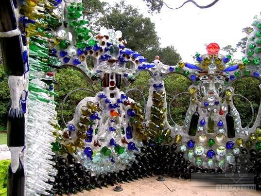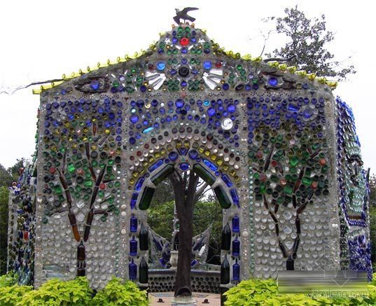Minnie Evans玻璃教堂為人們提供了一個(gè)花園休息處,教堂的形狀、色彩都會(huì)吸引你走進(jìn)來(lái)。 各種各樣的玻璃瓶都宣揚(yáng)了設(shè)計(jì)師對(duì)廢棄物的重新利用。對(duì)于建筑來(lái)說(shuō),燈光和造型一直是主旨所在,而一些回收物體作為建材經(jīng)常是建筑的另一大特色所在。使用回收材料的建筑,既環(huán)保又不浪費(fèi)金錢,而且這種建筑也越來(lái)越多。