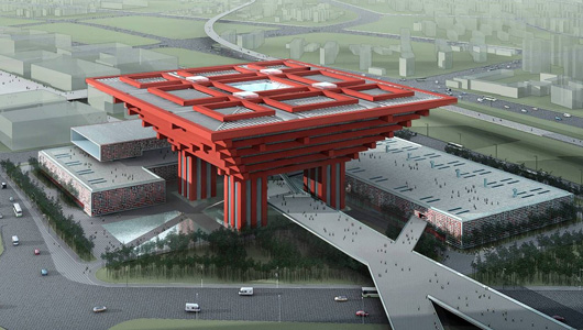 有人說,它像商周時期的青銅器,借喻國之重器、鼎盛中華;有人說,它像古時論兩稱斤的斗,取意天下糧倉、富庶百姓;還有人說,它像古人頭上的冠帽,故此得名“東方之冠”。而且,既有評論說它雄渾威儀,體現了國家氣度,也有觀點認為,它太過莊嚴,有損親和。 但不管人們如何議論,這座層疊出挑的紅色倒錐形建筑已然聳立在上海浦江東岸,古樸大氣,靜靜地期待著綻放的一刻。 在設計者看來,它不僅僅是上海世博園里的中國館,也不僅僅是一座能引來世人關注的建筑。它更像一個在國家重大建筑上發言、亮相的機會,是中國建筑界的一次集體展示。在西方建筑師獨領風騷的今天,這樣的機會尤為難得、尤為可貴。 中國建筑師的機會 站在上海浦東世博集團大樓(現為世博局辦公樓)樓頂,朝黃浦江方向望去,何鏡堂心里很不平靜。 天氣晴好,視野極佳,何鏡堂能夠清楚地看到浦江兩岸、盧浦大橋和南浦大橋之間有兩塊空地,一大一小,隔江相望。根據國家已經批復的建設規劃,那里將成為2010年上海世博會的舉辦地。作為華南理工大學建筑設計研究院院長,何鏡堂對縱攬兩岸的園區規劃贊賞不已,他深信,這片總面積達到5.28平方公里的廣闊空間足以讓建筑設計師們大展拳腳。 不過,興奮之余,何鏡堂也有一絲憂慮。規劃區內,平整土地才剛開始,大片的老廠房、居民樓尚未拆除,十幾輛推土機在高低不平的荒頭灘地上往來奔忙。當時已是2007年4月,距上海世博會召開僅剩下三年多的時間,規劃面積如此之大,能否如期完工?跟建筑打了一輩子交道的何鏡堂,確實有點犯嘀咕。而眼下,最要緊的是趕緊拿出中國館的設計方案。年近七旬的何鏡堂就是為此從廣州趕到了上海,與近百位國內同行一起,參加由建設部、世博集團和中國建設學會三方舉辦的中國館設計招標會。 時任世博集團世博項目部副總經理的施建培對那段忙忙碌碌的歲月記憶猶新!拔覀兓藘赡陼r間進行前期規劃,初步確定了一軸(世博軸)四館(中國館、主題館、世博中心、世博文化中心)作為永久性建筑。到2006年底,中國館的各項規劃指標都已確定下來!痹谝巹潟铮袊^分成國家館和地區館兩部分,國家館承擔國家層面的展示任務,將作為永久陳列;地區館將為31個省市自治區提供展區,世博會后辟為商業展覽中心。 與此同時,世博集團提出了一個極為大膽的創意——向全球華人公開征集中國館設計方案。直至今天,接受記者采訪的建筑界人士依然對當初這個打破常規的做法稱道不已。要知道,中國近幾年興建的標志性建筑大多由國外的建筑設計師主攬。中國人即便參與,也只能以聯合設計者的身份出現。其中況味,建筑界內部感觸最深。所以,中國館設計征集方案一傳開,中國建筑界立刻還以最積極而熱忱的響應。發布會一下子來了一百多位,建筑界有影響的人物悉數到場。 發布會結束后,與會人員都被請上樓頂,世博園總規劃師、同濟大學建筑與城市規劃學院院長吳志強指著浦江兩岸的園區預留地,向大家描繪了3年后的景象。何鏡堂特意朝緊鄰黃浦江、位于視覺中心位置的地方多看了幾眼,按照吳志強的說法,那里正是中國館的所在地。而在當時,那里還有一座4層高的樓房尚未拆完,是上鋼三廠的老廠房。 作為建筑學院士,何鏡堂被大家推舉出來,在會場上表了個態:“對中國建筑界而言,這是個機遇,也是一份沉甸甸的歷史責任。” 何鏡堂深知這份責任的重量。中國館第一次出現在世博會上,是在1876年的費城。與其叫“館”,不過是800多平方米的一處展區而已,展區前面設置有木質牌樓,上書“大清國”字樣。此后,簡化的傳統建筑式樣一直是世博會上中國館的主流,直到近年才有所改變。但中國館始終被當成一項展示工程,大多由展覽設計師操刀主理。這一回則不同,中國館真正被視作一座建筑,將由建筑設計師主持。歷史上不乏超乎想象、影響深遠的世博建筑,如巴黎的埃菲爾鐵塔、布魯塞爾的原子球館、西雅圖的太空針塔等等。在中國本土舉辦的世博會上,中國館將以何種姿態亮相?意義顯然超出了建筑本身。 何鏡堂也知道,上海方面的決定冒了不小的風險。這些年來,人們已經越來越習慣、接受乃至欣賞國外建筑設計師的作品,直接邀請知名國外建筑師來設計似乎把握大些、風險小些,但歷史決定為中國建筑師留下機會。有鑒于此,何鏡堂下決心搞出點名堂。 344件作品裝了兩卡車 廣州,五山路附近一處別致的工作室里,燈光常常徹夜不息。何鏡堂率領的團隊正全力以赴。 碰頭會每隔幾天開一次,大家暢所欲言。人人都同意應當設計一座有中國味道的建筑,卻從未達成任何統一的意見。中國文化悠久博大,可供選擇的意向實在太多,戲劇、書法、繪畫、器皿、園林、四合院……但拿出任何一件似乎也無法代表中國。一個月時間在不斷的否定與爭論中飛逝而過,眼瞅著離招標截止日期只剩了三個星期。何鏡堂不得不將團隊成員一分為三,人少了,爭議自然少些,可以迅速著手。 “別的館限高24米,而中國館可以做到60米,拿到規劃書之后,我的第一反應是一定要利用這個高度。”倪陽說。所以,他讓四根方形立柱架起一個平面空間,相鄰的兩根立柱之間仿佛一扇櫥窗,契合“展示”之意,取名“四面櫥窗”。倪陽至今保存著這一稿的設計草圖,記者怎么看怎么覺著,它的造型很像家里常見的四腿小方凳。設計要求2萬平方米