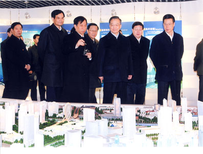 尹海林(右5)向溫家寶總理匯報天津市規(guī)劃情況