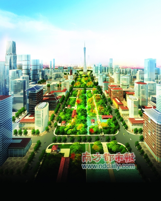 ![]() 新中軸線南段沿線將分布5個公園、180米寬的綠帶 兩棟相倚的高樓合成一道門,合力守在海珠湖南岸畔,這就是新中軸線南段新地標“嶺南第一門”。在此門東西兩側將建設廣州首條有軌電車線,沿線還將分布5個公園、180米寬的綠帶,有軌電車在新電視塔站可以和珠江新城捷運系統接駁,這就是昨日新公布的新中軸線南段城市設計描繪的美景。 新中軸線南擴面積增7倍 在市規劃局21日公布的新中軸線南段城市設計中,現有的新中軸線將以新電視塔為界向南擴7倍,從燕嶺公園到珠江新城、新電視塔,現有新中軸線的面積為5 .88平方公里,而南段的面積卻高達40.26平方公里,即使除去萬畝果園等外圍區域,南段核心區面積也有16.14平方公里,依舊比現有新中軸線大了2倍,未來廣州新中軸線大幅擴張幾乎已成定局。 大幅擴張之后,新中軸線南段的區域將規劃成五大功能片區,最北端是旅游觀光區,其中包括電視塔、赤崗塔、第一領事館區、商務辦公區等子塊;其次是區域行政區,囊括第二領事館區、大塘綜合商務中心子塊;靠近海珠湖和萬畝果園的區域被規劃成生態休閑區;剩下南海心沙、瀝滘樞紐等子塊一起被規劃為濱水居住區和科技創意區。 相倚高樓攏成“嶺南第一門” 整個新中軸線南段的最大亮點就是在海珠湖南岸附近規劃的嶺南第一門。現場模型顯示,嶺南第一門將采取兩棟相倚的高樓合攏成一道門的建筑方式,而這兩棟高樓的功能將融合酒店、旅游觀光、體育活動場、餐飲、紀念品銷售等諸多功能,未來將成為和珠江新城東西塔、新電視塔相呼應的新地標。 規劃人員介紹,嶺南第一門具體設計成什么樣、有多高、分幾層等實質內容,需要到后續的建筑設計階段才能確定,現在規劃只是提出這個初步概念,留待未來再一步步細化。除了嶺南第一門外,該區域的其他建筑將嚴格遵守高度控制和低密度開發(不超過30%),其中位于南段核心區一線的行政辦公建筑的高度主要為60-80米,生態休閑區建筑高度控制在10米左右,領事館區和第二領事館區、濱水區域的高度控制為10米到24米;綠色生態公園周邊限高為25米到50米,區域內的部分住宅和辦公限高為50米至100米。 5大公園組成180米寬綠帶 新城市南中軸線的綠化將形成一個倒“T”字形綠軸,其綠帶寬度為180米,沿線分布規模各異的生態綠地公園,從北往南主要為:中軸綠地公園、海珠湖公園、萬畝果園、體育公園和濱江公園等5個公園。所有公共空間均向公眾開放,水元素和步行道系統貫穿始終,并設置一定的娛樂、游覽、教育和體育鍛煉等功能。 除了常規公園綠地之外,新中軸線南段還將充分發揮江、岸、島、灣、港等濱水岸線特征,設計多樣生動的濱水休閑游樂場所,比如自西向東長達數公里的濱江公園可為人們提供體育活動設施、游艇碼頭、階梯濱水廣場、釣魚區、海鳥棲息地、界碑公園、新客港碼頭、圓形廣場、步道等。值得一提的是,規劃將充分利用南海心沙島優越的地位景觀位置,除了將其建設成為港口碼頭之外,未來也將像現有的珠江新城海心沙島一樣,形成市民活動廣場。 南海心沙水巴未來通香港 整個新中軸線南段共規劃有地鐵3、8、11、12、20號線以及廣佛線共6條軌道線,10個軌道站點,軌道站點800米的覆蓋率達到72%。這里還規劃了廣州首個有軌電車系統,在區域內部形成東行線和西行線,整個線路總長16公里,將設27個站,在軌道站附近規劃自行車停放場地,方便市民自行車換乘。值得一提的是,有軌電車系統將在新電視塔站和珠江新城捷運系統接駁,由此將整個新中軸線串聯起來。 規劃人員表示,整條有軌電車線路主要功能是解決內部交通,但由于行經新電視塔、海珠湖、嶺南門和南海心沙島,沿途均有良好的視覺景觀,實際上也可以起到城市觀光的效果。 除陸上交通之外,規劃還計劃利用南海心沙開通水上巴士線路,預計沿珠江前后航道共規劃8條水上巴士線和2條從新客港—番禺蓮花山、南沙客運港的水上快線,未來還可能開通通往珠三角其他城市甚至通往香港的水上巴士線路。 記者手記:設想二十年再建新一段中軸線 20年的時間刻度對一個城市意味著什么?答案是可以基本建成一條城市的中軸線。如果以1987年天河體育中心建成為起點,建成一段廣州新中軸線(不包括這次規劃的南段部分)用了23年,而這一次,廣州為再建一段新中軸線(即本次規劃的南段)同樣設想了20年的時間表。 21日的新聞發布會提出新中軸線南段的建設可分三期,其中亞運會后3年為近期,基本建成中央綠軸及兩側道路、海珠湖,完成環島路的拆遷、建設和整治,建成行政辦公區、第一第二領事館區、回遷安置區等;近10年內為中期,完成城中村改造、嶺南第一門、南海心沙島、地鐵樞紐的建筑;后10年為遠期,完成整個地區的整體建設完善。 過去20年,新中軸線帶給廣州城市景觀的變化充滿戲劇性。1996年80層中信廣場建成時,它不僅是廣州第一高樓,也是全國第一高樓,20年后的今天,它已經從廣州第一的寶座上跌落,更遑論全國第一高。20年前新中軸線上的雙子星座是中信廣場和中誠廣場,誰能想到會被今日珠江新城東西塔取而代之。新中軸線北段推倒并興建了林和村、獵德村,給成千戶村民帶來生活的巨變;而面積更大的南段建設時又將推倒多少個城中村,又會有多少村民從握手樓住進高樓大廈? 20年后,南北新中軸線建成定型,廣州是
