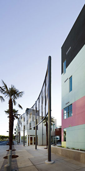 國內的住房問題一直糾結,針對所謂“廉租房”、“經濟適用房”等一系列保障性住房政策的質疑聲也不斷。轉向設計角度,如何真正把住房的“保障性”落到實處,讓中低收入的居住者獲得同樣的居住質量是眼下政府和開發商應當認真面對的問題。有人提出應當多參照國外的成功案例。 ![]() “2010美國建筑師協會——住房與城市發展部獎”(2010AIA/HUDAwards)獲得者名單于近日公布,這個獎項是由美國建筑業內最權威的“美國建筑師協會住房和傳統住宅社區”(HousingandCustomResidentialAIAKnowledgeCommunity)和美國“住房與城市發展部”聯合設立并頒發的,獲獎項目給了我們足夠的參照價值。 ![]() “杰出經濟適用房設計獎”(ExcellenceinAffordableHousingDesign) 獲得杰出經濟適用房設計獎的是由DavidBaker+Partners建筑師事務所設計的PaseoCenteratCoyoteCreek項目,這個廉租綜合公寓項目位于加利福尼亞州的圣何塞,是為了圣何塞市的印第安原住民和新移民們所設立的。 這個小區設立在新近開發的城市規劃區,小區面向PaseoSenter大街,這條步行大街直接通往面積達13英畝的CoyoteCreek森林公園,基地選址的優越性不言而喻。盡管這條步行大街仍然允許汽車通過,但是針對車速和車流的控制還是有效地保證了大街交通的平靜,大部分時間你能看到的還是往森林公園的行人居多。而在街邊,明快的建筑外立面拼貼色彩一目了然,在加州的陽光下令人心情格外愉悅。 小區整體是一圈圍合型多層建筑,建筑師將小區的活動空間全部放在一層,其中包括入口處醒目的波浪形門頭、一間社區活動室、一個圖書館、一個兒童活動中心、一個老年人關懷中心、印第安人教育中心和其它辦公室。三層的公寓在這些公共功能空間之上,建筑師并沒有在內部戶型上花太多精力,還是沿用了美國通常的城市混合公寓戶型。 Paseo小區中心處是一個公共庭院廣場,這是整個小區中建筑師最為得意的部分,“庭院的最外圈是各個居住區域的入口,所以這個庭院是住戶們每天出門和回家的必經之路,他們的每天的日常所見肯定會影響他們的心情。”這個巨大的“豪華”庭院中不僅有一個供人們休憩玩耍的大花園和棕櫚小樹林,甚至還有一個供租戶免費使用的標準游泳池。 ![]() “創造性社區設計獎”(CreatingCommunityConnectionAward) 由PSLArchitects建筑師事務所擔綱設計的ArborLofts項目同樣位于加利福尼亞州。在Lancaster林蔭大道邊,這里是Lancaster的市中心,ArborLofts項目就毗鄰規劃中的Lancaster美術館。這座建筑是為了提供給貧窮的藝術家們住房和工作室,PSLArchitects建筑事務所除了有效地解決了這個問題,還將建筑的公共空間規劃成了一座居民美術館和室外庭院畫廊——“利用這座居住建筑的特殊性,富有創造力地提供了社區內部以及社區周邊更多聯系”,所以獲得創造性的社區聯系設計獎也是理所應當。 這座建筑在去年夏天落成,落成當天,住在這里的藝術家們將落成典禮變成了一次藝術狂歡節,這也吸引了Lancaster當地的很多民眾前來。進入閣樓公寓內部,2層的Loft公寓擁有獨立的臥室和工作空間。而建筑師所標榜的社區美術館就在街邊,它同時也是藝術家公寓的主要出入口,與林蔭大道形成了有效的聯系。 ![]() “標準社區設計獎”(community-informeddesign) 于得克薩斯州達拉斯市的剛果街(CongoStreet)始建于1910年,是美國種族隔離年代的產物,這個一度被人遺忘的小型黑人社區,由于年久失修,超高居住密度的危房隨處可見,這里的居住密度達到了每英畝占地面積26戶——盡管社區距離市中心只有2英里,距離州政府也只有三個街區。許多現在居住在此的老人是以前房主的孩子或孫子,他們是如此夸張高密度形成過程的見證人。 由同樣來自得州的一群年輕建筑師組成的buildingcommunityWORKSHOP在剛果街綠色示范項目中不但扮演了設計師的角色,更以自發性的施工完成了5套示范單元的改擴建。這個工作室是由來自南衛理公會大學(SMU)的應屆畢業生組成的非營利性組織,所以剛果街項目也成了學生們進入社會之前的實習項目。 這些經濟適用單元證明了任何破敗的社區都可以以低成本進行綠色重建。來自bcWORKSHOP的Jerry說:“這五戶的重建一共花了50000美元,但更重要的是,重建工程為房主保住了幾十年的鄰里感情。”由此可見,重建過程不僅最大化得利用了原有建筑結構,更留住了整個社區的凝聚力。“這些示范單元為還沒進行改建的鄰居們提供了繼續生活在這里的希望。” ![]() “無障礙住房設計獎”(HousingAccessibility/AlanJ.RothmanAward) 獲得無障礙住房設計獎的是TylerEngle建筑師事務所設計的MadronaLive項目,這個項目是為一對殘疾人夫婦進行舊房改造。這是位于西雅圖市中心的一處街邊店面房,建于上世紀初,此前這幢商業用房從沒被作為住房,曾經被作為藥店和冷飲店,而最近一次也是被改造成開發商的辦公室。TylerEngle將這座百年老屋改造成了“獨具現代意義的傳統庭院”,改造工程的最亮點就是客廳和餐廳區域的大型天窗。 設計中巧妙地將廚房和衣帽間放置在整座房子的中心處,將原有院子的光線成功引入,其他的公共生活功能單元都環繞在其周圍,并在白天能充分地享受到日光,也讓生活中有所不便的主人更方便地到達各個功能空間。除此之外,建筑師還為屋主特別設計了更為人性化的無障礙生活家具和五金件,Madrona激動地說:“這個新房子成功地縮