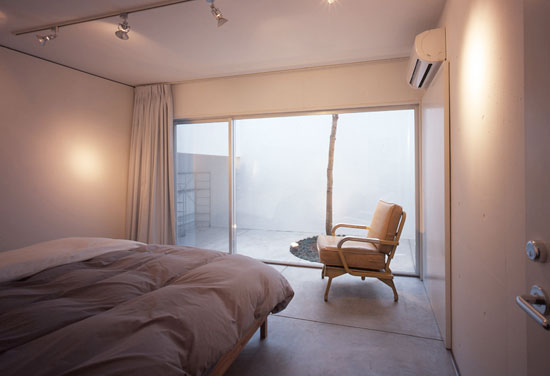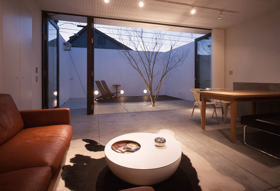 Baqueratta是個日本的建筑設計工作室,它主要是設計一些日本式的住宅建筑。它的設計風格跟其他公司是有區別的,就像這個在東京的OK HOUSE,外面是黑暗沉重的,一下子都看不到門在哪里,只看到有一條樓梯。但一旦進入家里,一盞燈發出柔和的光芒,給人以強烈的對比感。房子的空間主要以玻璃門墻來間隔。