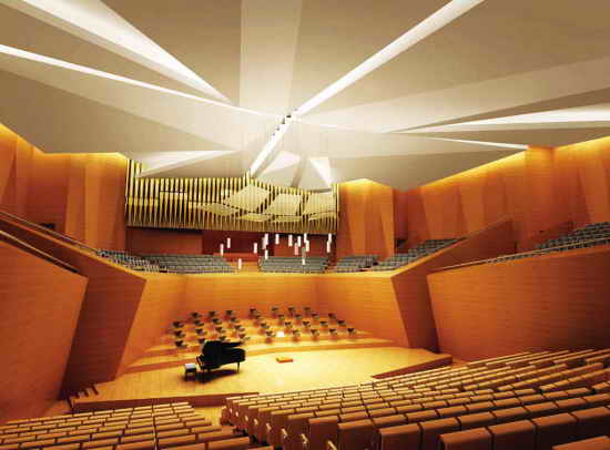 沈陽文化藝術中心,64面“鉆石”造型步移景異;總建筑面積約8.5萬平方米,主體建筑主要由1800座的中央劇場、1200座的音樂廳和500座的多功能廳三部分組成。 ![]() ![]() ![]() ![]() ![]() ![]() 2013年,在金廊、銀帶的交匯處,即將出現一顆晶瑩剔透、璀璨奪目大“鉆石”,那就是沈陽文化藝術中心。8月16日,記者從沈陽市建委獲悉,沈陽文化藝術中心相關規劃和設計已基本完成,目前正在進行土方平衡、工程試驗樁的試壓檢測等工作,即將動工興建。 按照設計,沈陽文化藝術中心總建筑面積約8.5萬平方米,外形酷似一顆鉆石,主體建筑主要由1800座的中央劇場、1200座的音樂廳和500座的多功能廳三部分組成,其功能和演出效果完全可以與國家大劇院相媲美。 2013年6月底前全面竣工 沈陽文化藝術中心位于沈陽五愛渾河隧道以西,青年大街以東,渾河以北,二環路以南,占地面積約6.5萬平方米。 根據規劃,沈陽文化藝術中心主體建筑地下一層、地上七層,建筑物總高57米。除了中央劇場、音樂廳、多功能廳這三大空間外,總體建筑還包括3000多平方米的地下車庫,3萬多平方米的附屬用房。這里可以舉辦舞劇、話劇、歌劇、芭蕾、音樂會、時裝表演等眾多藝術演出。經過精密的聲學計算,在這里的演出效果完全可以與國家大劇院相媲美。 根據施工安排,2010年年底完成基礎工程,2011年年底實現主體結構封頂,2012年年底完成室內外裝飾工程,2013年6月底前全面竣工。 64面大“鉆石”步移景異 為什么設計成“鉆石”?市建委副主任魯博告訴記者,設計師設計時考慮的元素很多,但最核心的是把沈陽文化藝術中心建成未來沈陽最具亮點的建筑。 沈陽文化藝術中心從大輪廓來看主要是三部分:鉆石外觀、平臺、基座。平臺與核心建筑相輔相成,從西到東貫穿中心,將有效銜接了城市道路、主體建筑與自然環境。大平臺與鉆石(建筑二層)銜接,將基座(建筑一層)屏蔽在人們視線之外,使建筑對自然景觀和臨水界面的影響達到最小。 基座則包括綜合劇場,多功能廳和音樂廳,用設計師的話說,它白天無形,夜晚閃閃發光,如同音樂一般看不見、摸不著,感覺飄浮在空中一般。兩個視為“聲音的源泉”的劇場與音樂廳鑲嵌其中,向人們展示音樂那特有的神秘魅力。 最后,也是最出彩的“鉆石”外觀,它最大的亮點就是多面性,它有64個面,建成后的藝術中心,從東西南北四個方向眺望它,就會呈現出步移景異的效果,其立面均呈現不同形態,如藝術一般,從每個角度觀賞都有新的感受。白天,文化藝術中心宛如璀璨鉆石,晶瑩剔透,清澈而寧靜的偎依在渾河岸邊,夜幕降臨,它又變身為色彩斑斕的夢幻之石,呈現絢麗的變化,代表著各種藝術形式在這里碰撞、交融、熠熠發光。 地鐵直達設計彰顯人性化 除了公交車外,地鐵二號線在文化藝術中心附近有站點,從地鐵站出來后,行人可以直接由舒緩的無障礙大平臺抵達二層觀眾大廳。 根據設計,沈陽文化藝術中心將采用16部電梯,8部自動扶梯。其中,北側入口設鋼琴貨運梯,直達音樂廳舞臺層;一層設四部觀光電梯到達綜合劇場樓座及音樂廳;四部消防電梯分別為觀眾及演職員服務,并達到地下室;2部客梯從地下室到頂層;2部舞臺工作客貨梯;3部客梯從地下室到一層,為多功能廳演職員及綜合劇場樂隊服務。 在總體設計中,中心地塊內各級道路人行道的縱坡度不大于2.5%,人行道有臺階時,設輪椅坡道。主要入口的人行道設緣石坡道;人行道設置盲道;停車場設置無障礙車位;無障礙電梯直達7.5米標高的大平臺。 按照設計,沈陽文化藝術中心機動車流主要分為兩部分。第一部分是觀眾車輛,觀眾車輛可以通過規劃路進入西側大平臺下停車場,然后步行至1層觀眾大廳,或通過大樓梯、無障礙電梯抵達2層觀眾大廳。 第二部分是貴賓、布景、演職人員、工作人員、后勤服務、轉播車等機動車構成,這部分車輛將通過規劃路進入中心。規劃路在建筑北側與基地內部環路銜接,并可直接抵達各相關入口,與觀眾人流相對獨立,互不干擾。