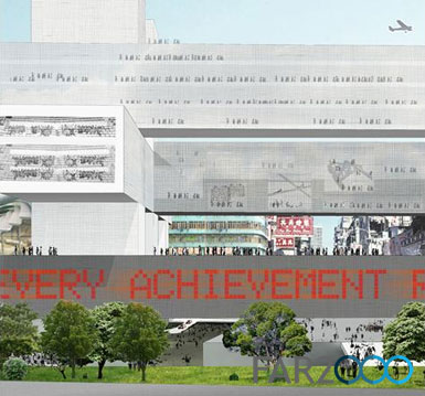 OMA設計了一座新的博物館,用于展示視覺藝術、電影、設計和流行文化;“藝術工廠”中設置了教育空間、藝術家工作室;此外還有一座酒店和一座商店,其下方建造了一座展覽中心和一系列劇場,包括一座可容納1.5萬人的體育場。