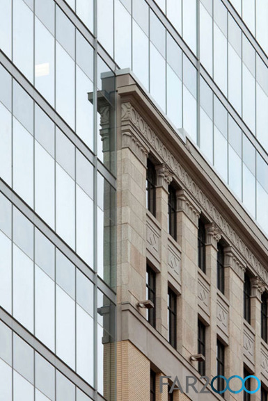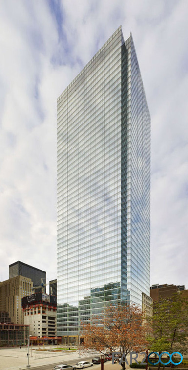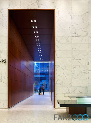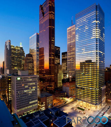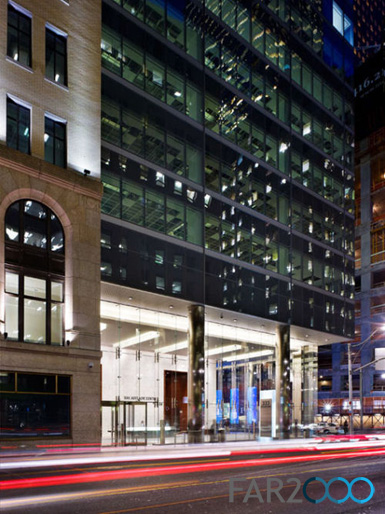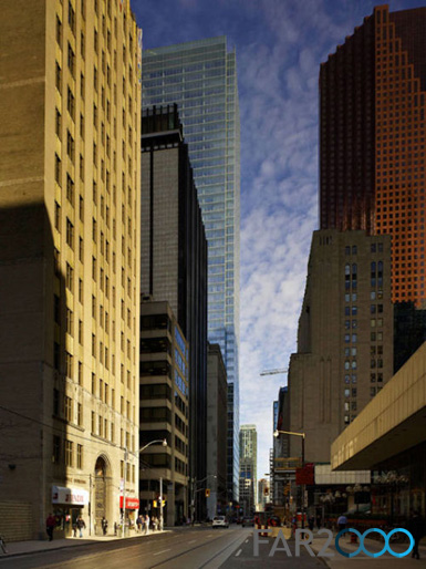 建成于今年1月的51層阿德萊德灣中心大廈在尺度上與周圍銀行大樓差不多。它位于多倫多市金融中心占地兩個街區的開發地帶上。 這座大廈有11.1萬平方米的3A級辦公空間和3700平方米的地下零售空間,并連接著市區的PATH線路。該建筑是三座大廈組成的項目中的一期工程,三座大廈中間是一座城市廣場,面積1/2英畝。 大廈所在的海灣大街(Bay Street)有著很多高大的歷史建筑,被譽為“海灣大街峽谷”。由Chapman和Oxley為1926年國立大廈重新設計的立面也無縫化地結合在了新建筑上。 主樓大堂是高度透明的,外墻采用經典的Stauario大理石和Makore木材。夜晚,點亮的大堂成為海灣大街和阿德萊德大街轉角處的“燈塔”。由藝術家James Turrell設計的公共藝術品面對著阿德萊德大街。廣場中的玻璃廊道和辦公樓的電梯井都有助于日光照射到地下零售空間。