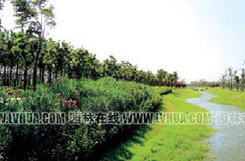 摘要:城市道路綠化是一個城市的形象與特色,良好的城市道路綠化是城市空間的延續(xù),也是市區(qū)生態(tài)環(huán)境的良好保障。鹽堿地的綠化主要是對土壤的改良和樹種選擇、栽種。本文將通過上海市臨港新城滬城環(huán)路(C4)路綠化景觀設(shè)計的分析,淺談鹽堿地城市道路綠化設(shè)計。 關(guān)鍵詞:城市道路綠化 鹽堿地 排鹽工程 一、前言 城市道路網(wǎng)是組織城市各部分的“骨架”,也是城市景觀的窗口,代表著一個城市的形象。城市道路景觀是在城市道路中由地形、植物、建筑物、構(gòu)筑物、綠化、小品等組成的各種物理形態(tài)。 二、城市道路綠化設(shè)計要點 城市道路綠化是城市道路的重要組成部分,在城市綠化覆蓋率中占較大比例,是城市景觀風(fēng)貌的重要體現(xiàn)。從道路綠化規(guī)劃與設(shè)計基本原則出發(fā),城市道路設(shè)計主要考慮以下幾個方面: 1.可持續(xù)發(fā)展 可持續(xù)發(fā)展主張不為局部的和短期的利益而付出整體的和長期的環(huán)境代價,堅持自然資源與生態(tài)環(huán)境、經(jīng)濟(jì)、社會的發(fā)展相統(tǒng)一。在城市道路景觀設(shè)計中的具體表現(xiàn),就是運用規(guī)劃設(shè)計的手段,結(jié)合自然環(huán)境,使規(guī)劃設(shè)計對環(huán)境的破壞性的影響降低到最小,并對環(huán)境和生態(tài)起到強化作用,同時還能夠充分利用自然可再生能源,節(jié)約不可再生資源的消耗。 2.保持整體性 城市道路景觀設(shè)計的整體性可以從兩方面來理解: 第一、從城市整體出發(fā),城市道路景觀設(shè)計要體現(xiàn)城市的形象和個性。 第二,從道路本身出發(fā),將一條道路作為一個整體考慮。統(tǒng)一考慮道路兩側(cè)的建筑物、綠化、街道設(shè)施、色彩、歷史文化等,避免成為片段的堆砌和拼湊。 3.連續(xù)性 城市道路景觀設(shè)計的連續(xù)性主要表現(xiàn)在以下兩個方面: 第一,視覺空間上的連續(xù)性。道路景觀的視覺連續(xù)性可以通過道路兩側(cè)的綠化,建筑布局、建筑風(fēng)格、色彩及道路環(huán)境設(shè)施等的延續(xù)設(shè)計來實現(xiàn)。 第二,時空上的連續(xù)性。城市道路記載著城市的演進(jìn),反映出某一特定城市地域的自然演進(jìn)、文化演進(jìn)和人類群體的進(jìn)化。道路景觀設(shè)計就是要將道路空間中各景觀要素置于一個特定的時空連續(xù)體中加以組合和表達(dá),充分反映這種演進(jìn)和進(jìn)化,并能為這種演進(jìn)和進(jìn)化做出積極的貢獻(xiàn)。 三、鹽堿地及影響 鹽堿地由于土壤內(nèi)大量鹽分的積累,引起一系列土壤物理性狀的惡化:結(jié)構(gòu)粘滯,通氣性差,容重高,土溫上升慢,土壤中好氣性微生物活動性差,養(yǎng)分釋放慢,滲透系數(shù)低,毛細(xì)作用強,更導(dǎo)致表層土壤鹽漬化的加劇。 鹽堿對植物的危害表現(xiàn)在: 1.引起植物的生理干旱。鹽土中含有過多的可溶性鹽類,可提高土壤溶液的滲透壓,從而引起植物的生理干旱,使植物根系夏種子發(fā)芽時不能從土壤吸收足夠的水分,甚至還導(dǎo)致水分從根細(xì)胞外滲,使植物萎蔫甚至死亡。 2.傷害植物組織。土壤含鹽量過高,尤其在干旱季節(jié),鹽類集聚表土常傷胚軸,其傷害能力以碳酸鈉、碳酸鉀為最大。在高PH值下,還會導(dǎo)致氫氧根離子對植物的直接傷害。有的植物體內(nèi)集聚過多的鹽,而使原生質(zhì)受害,蛋白質(zhì)的合成受到嚴(yán)重阻礙,從而導(dǎo)致含氨的中間代謝物的積聚,造成細(xì)胞中害。 3.影響植物正常營養(yǎng)。由于鈉離子的競爭,使植物對鉀、磷和其他營養(yǎng)元素的吸收減少,磷的轉(zhuǎn)移也會受到抑制,從而影響植物的營養(yǎng)狀況。 4.影響植物的氣孔關(guān)閉。在高濃度鹽類作用下.氣孔保衛(wèi)細(xì)胞內(nèi)的淀粉形成受到阻礙,致使細(xì)胞不能關(guān)閉,因此植物容易干旱枯萎。 四、實例分析——上海市臨港新城滬城環(huán)路(C4)道路綠化景觀設(shè)計 (一)背景 2002年作為洋山深水港后方基地的臨港新城,選擇了南匯區(qū)蘆潮港東側(cè)的大片灘涂作為主城區(qū)。一聲令下,風(fēng)云匯集港城,圍堤吹填成陸,滴水湖開挖成功引水人湖。 2004年二期大堤竣工,根據(jù)市政府“港開、橋通、城用”的要求,港城各路段的綠化景觀設(shè)計也提上了日程。筆者也非常榮幸地參與了滬城環(huán)路(C4)道路綠化景觀設(shè)計。 項目自然條件如下 1.土 C4道路土壤是圍海造田形成,鹽堿性較強(PH8.5-9.0),有機質(zhì)很少,孔隙少通氣性差,極其貧瘠,雨后鹽堿上泛。 2.氣象 位于亞熱帶北緣,屬于東亞季風(fēng)盛行區(qū),受大陸季風(fēng)和海洋季風(fēng)的交替影響,四季分明,雨量充沛,光照充足,但易遭受臺風(fēng)、寒潮等災(zāi)害性天氣的影響。 降水:多年平均降水量1,174毫米;多年最大降水量2,025毫米(1999年);多年最小降水量655毫米(1978年);多年平均日降水量≥25.0毫米的天數(shù)12.2天。本地區(qū)降雨量集中在5—9月,占全年降水的60%。全年降水日數(shù)137天,降水日數(shù)較多的在3—6月,期間主要有春雨和梅雨兩個雨季。 氣溫:多年平均氣溫15.7℃,最熱月平均最高氣溫30.7℃,最冷月平均最低氣溫為1.0℃。多年極端最高氣溫37.8℃,多年極端最低氣溫-8.4℃。 風(fēng):風(fēng)向季節(jié)變化明顯,全年風(fēng)向