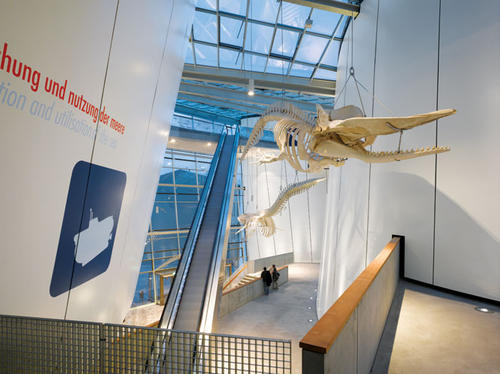 “海洋博物館”的多級自動扶梯和與實物一樣大的鯨的骨架。 除了合作伙伴哈斯、大衛·庫克(David Cook)和克里斯托弗·詹特森(Christof Jantzen),他的最接近的合作者是布羅哈波爾德公司(Buro Happold)的托尼·麥克洛寧(Tony McLaughlin)和“超日工程公司”(Transsolar Climate Engineering.)的托馬斯·奧爾(Thomas Auer,)。他們為位于馬薩諸塞州阿斯頓(Allston)的哈佛大學分校設計和建設一個新的科研中心,安排在2012年投入使用。 根據建筑的內容創造新的形式