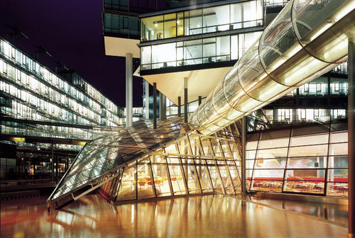 Landesgirokasse Bank銀行管理大樓的采光結構。 這個博物館的外形,反映了這座城市對一座標志性建筑的渴望。設計師還要考慮附近的貨運倉庫、古老的木構架住房、單調的山墻建筑和磚結構的哥特式教堂的比例。 在綠色建筑設計領域促進競爭和創新 聯合利華公司在德國漢堡的新總部,可能是到目前為止,史蒂芬·貝尼奇在性能上要求很高,并且在形式上最講究創新的項目。