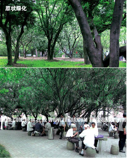 盡管公園有許多不足,但人流量十分充裕.可見這個公園對附近居民的重要性和改造的迫切性。 二、設計理念 (一)“新城市主義”是此次改造設計的核心思想.它的內涵是可持續性發展的,是在人們生活的空間中捕捉和營造人與人、人與環境的情感交流.將傳統思想予以保留。它強調清晰的空間結構,完整的綠化系統,便捷流暢的步行環境.生動的廣場、院落以及充分利用周邊的環境資源。本設計力求通過這些簡單的邏輯來創造豐富的空間體驗以喚起人們對環境、文化、傳統和現代化城市生活的和諧對話。