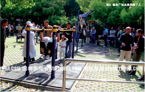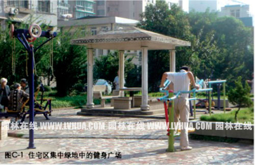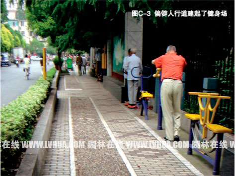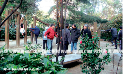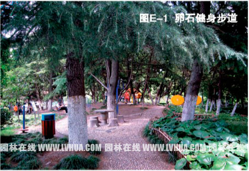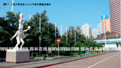 一、健身廣場的形成 社會的快速發展,健身的內容已逐步深入人心。加上老年化社會的形成.康健小區達標的要求,健身在新舊居住區、公園、學校、街道綠地甚至可利用的邊角地塊等地方,普遍成為一項老百姓喜聞樂見.老少咸宜的重要生活內容。因而產生了“健身廣場”這樣一種新型的項目和新的概念。但是在居住區環境景觀設中,對此認識不足,有的僅在規劃中表示地位,有的甚至忽略其存在,留造待物業或居委找生產商見縫插針自行建,很少有對“健身廣場”進行詳細選型排列布置的。本文意在引起對這方面的關心注意。(圖A) 二、健身廣場的類型 (一)健身類具材 市售各種成型的具材,多數為鋼木材制品,價廉物美,如太空漫步、腹背牽引器等,也包含健身道路—一現在是健身廣場的主要內容。 (圖B-l) (二)運動類具材 各種小型的常規定型具材,如單杠雙杠,吊環、羽毛球乒乓球場等,主要服務對象為中青年,在有較大場地的公園綠地可以見到這種布置。 (圖B-2) (三)玩具類具材 各種成組的小型多樣具材,也包含沙坑等設施。主耍服務對象為青少年,多數公園可以見到這種設施。 (圖B-3) (四)這三項內容從活動的“動靜”上是一致的,但服務對象是不同的,有時單獨設立,有時結合在一起布置。 (圖B-4) 三、健身廣場的選地 (一)居住區內的健身廣場經常布置在集中綠地、幢間綠地上,與住戶有適當距離,避免對居民的影響。一般每個居住區有多于一個健身廣場,用于安放健身類或玩具類具材。 (圖C-l) (二)公園內的健身廣場 往往選擇在靠近入口處,形成獨立的空間,有時健身具材是有很大規模,有時玩具具材擴展為娛樂運動,如攀巖等。(圖C-2) (三)街道綠地的健身廣場 應考慮地形,充分利用每個邊角布置,不影響其他活動,多數為小型多樣的健身類具材。 (圖C-3) 四、健身廣場的規劃 (一)各類具材選型妥當、間距合理,有規律地排列,互不影響使用。 (圖D-1) (二)有良好的活動環境,最好大部分具材處在樹蔭之下。 (圖D-2) (三)有防滑.排水的舒適鋪裝,各項附屬設施都符合安全要求。 (圖D-3) (四)除了健身活動,最好還有休息閑談的場所、座椅.照明。 (圖D-4) (五)一般具材設有使用說明銘牌,規模較大的完整揚地設管理房。 (圖D-5) 五、常用健身具材的尺寸和安全距離 (一)健身步道(圖E-l) ●單向活動的健身步道寬1.2 - 0.9米,平面必須圈狀閉合;考慮活動人多時的雙向健身步道寬1.5 - 1.2米。 ●健身步道具足底按摩的作用,卵石最好直立粘貼但大小相當表面平整。 ●卵石道邊緣最好有明顯觸感,以適盲人或閉眼活動。 ●所選卵石可作彩色拼花圖案,常用斷面為素砼80-100毫米下碎石夯實。 常用健身具材 太空漫步等二十項。 健身具材的安全間距 ●常用健身具材尺寸各廠生產略有不同,以實際尺寸為準。 ●在使用人上下的方向建議至少留0.5米距離,因此健身具材之間至少距為1米,一方面是考慮安全,一方面是考慮穿行,再留有適當的余地。 ●在使用人活動的方向建議至少留0.9 -1.8米距離。按我國人體平均雙手左右平攤長為1.7米,單手向前長為0.85米這個距離應是足夠的。 ●在使用人不活動的方向建議至少留0.3 - 0.5米距離。有的健身具材活動時向前或后外伸,應以最大范圍尺寸為準。