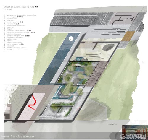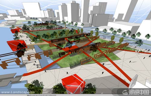 HBO+EMTB是屋所與土人設計協助完成的設計方案“中國結” 惠靈頓作為新西蘭的行政首府在國家發展中扮演著特殊的角色。它歷史悠久,是新西蘭的行政中心和文化中心。像許多海濱城市一樣,惠靈頓2km的海岸線也在過去的20年間經歷了翻天覆地的變化,從單純的運輸港口發展為港口和公共空間相結合的多功能區。這里坐落著新西蘭國家博物館等主要的文化設施、餐飲購物娛樂設施以及由倉庫改建的住宅樓。濱海區的“變臉”還包括許多新建的公園和2006年初開始運營的位于南端的威坦哲公園。 海風輕拂的惠靈頓北部海港憑借其興旺的休閑游艇業、商業性捕魚和港口運輸成為一道靚麗的城市風景線。所有的活動均經惠靈頓濱海有限公司這個特殊的行政機構在市議會的監督下運營。公司主要負責該地區每日的運營管理以及包括開放空間在內的各種設施的開發與管理。 位于原有公共空間的弗蘭克·基茨公園(以一名前市長的名字命名)也在濱海新規劃中(惠靈頓濱海規劃框架2001年,第35頁)。它巧妙地與城市肌理相結合,將可用空間、海濱以及為觀賞游艇(每年一度的龍舟賽)和海灣美景而建的各種休閑娛樂設施完美融合在一起。盡管公園占地僅有2萬平方米,但它自20世紀80年代末建成以來就備受市民的歡迎和喜愛。園區內零星點綴著些可用來遮風避雨的景觀小品、一個健身場所和諸多的雕塑品、紀念物和公共藝術。然而大約1/3的園區位于地下停車場之上,這樣不僅使屋頂與主要通道相分離,而且與城市及其周邊環境缺乏聯系,這也是將其進行重新規劃的一個重要原因。 作為一處文化景觀,惠靈頓濱海景觀設計也賦予其豐富的文化內涵。它不僅要體現出藝術性和紀念性,而且要展現出那些為國家發展做出杰出貢獻的人群的風采。華人為現代新西蘭,特別是惠靈頓的發展做出了巨大貢獻。他們緊隨歐洲殖民者的步伐,在140年前就定居新西蘭。盡管惠靈頓已與北京和廈門結為友好城市,但是當地的華人移民至今沒有專門的紀念館或公共空間來記錄他們對城市發展所做的貢獻。20世紀90年代中葉,當地華人在伊瑟·馮的帶領下創立惠靈頓中國園林協會(WCGS),希望在濱海區內修建一座花園來改變這種狀況,同時社會各界也為學會基金的成立慷慨解囊,使之成為促進城市發展的生力軍。協會與城市簽署的第一份協議就是在威坦哲公園內修建園林;但是種種跡象表明該地塊并不適合開發,它下面的停車場就為設計帶來諸多的局限性。 第二塊已獲批準的選址是預計2008年至2009年開發的弗蘭克·基茨公園。盡管地下停車場也為該地塊的規劃帶來一定限制,但它僅占總面積的1/3。 由于公園和占地具有極高的公眾價值,因此設計品質的需求和設計師的選擇就通過有限競標開展。適合并具有資質的設計公司首先遞交意向申請書;接下來5家公司通過初審,并要求他們開展公園的概念設計,其中包括一座中國園的設計。這些公司的設計方案展現于本文。惠靈頓海濱有限公司和惠靈頓中國園協會與當地社團合作,收集了近70份書面意見書來最終確定其設計概要。概要中描述中國園占總面積2萬平方米地塊中的約3km2,是一座經典的“當代中國園”。它不僅“象征著惠靈頓華人和中國移民的滄桑歷史,而且體現華人在豐富城市文化和城市結構方面所取得的成就……它不僅與整個弗蘭克·基茨公園完美融合在一起,而且成為一處通過創新和富于想象力手法來詮釋傳統中式園林設計精髓的標志性景觀。此外,這座中國園還充滿活力、古樸醇厚,易于維護!北M管園林擁有濱海這樣得天獨厚的地理位置,但它的設計重點卻在于重新詮釋傳統并巧妙結合市民生活空間(并非遠離人們的生活)。 最終優勝設計方案通過評審委員會評審所產生。評審委員包括澳大利亞景觀設計師兼惠靈頓中國園林協會顧問Oi Choong、景觀設計師羅賓·辛普森和城市規劃師莫頓·格杰爾德,他們都是城市規劃顧問和城市規劃技術咨詢委員會成員、社區代表羅莎蒙德·埃沃頓和濱海區首席執行官伊恩·派克。我本人也作為評審組織者而成為評審之一。我們認真評審設計師,參考社區、技術委員會、施工技術員和惠靈頓中國園林協會的各種評價。設計師的姓名在這一階段中是不向評委公開的。 每一個設計都面臨著設計概要和以不同手法結合人們的濱水生活環境來詮釋當代中式園林所帶來的挑戰。設計方案中的挑戰包括以何種方式或是否在園林和公園形式中和諧地將各種對立元素融合在一起,如新與舊、傳統與現代、融合與排斥、開放與封閉。許多設計公司(Isthmus Group、HBO+EMTB與土人設計合作和Chow Hill建筑設計事務所)分別提出了中式園林設計極具參考價值的要素,如綠化種植和園區中富于象征意義的雕塑及建材。它們成為貫穿整個園區的整體元素。HBO+EMTB建筑設計事務與土人設計所采用的紅門、紅徑和“絲帶”作為整個園區的連接元素;而地峽集團(Isthmus Group)則在臨街路邊設置中國植被和各種亭臺樓榭,沿著杰沃斯碼頭與繁忙的街道渾然一體。澳大利亞悉尼周希爾建筑設計事務所(Chow Hill)結合風水學說闡述整個園區的形式表達(基于中國古代“青龍”、“玄武”、“白虎”和“朱雀”的四方之神),目的是通過一系列圓形空間將土著毛利文化與外來的中國文化和歐洲文化串聯起來。評審團則更關心設計方案的可行性(規