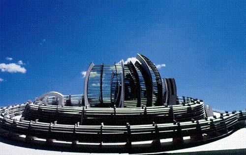 4. 輕觸空間。輕觸空間是一個生態建筑—最大限度地減少城市對周邊自然環境的侵犯,同時實現城 市文化、教育和經濟利益的最大化。整個輕觸空間的結構設計旨在為建筑物內部空間營造一個微型氣候環境。為此,索萊里提出了“外套建筑”概念以實現空間內熱量與光線的自我調節。在炎熱的季節里,用不透光的“外套”來遮蔽陽光,使室內保持涼爽;而寒冷的季節則著上透明“外衣”,使空間內部得到充分的日照,保持溫暖。