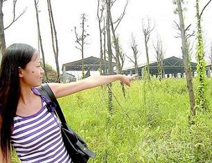 昨日上午,在荷塘區桂花村村部大樓前面的一塊空地上,記者看到:數百棵直徑碗口粗、高約5米的香樟,絕大多數禿成了一根 “光桿”,連一片枯都沒有,樹木之下雜草叢生。