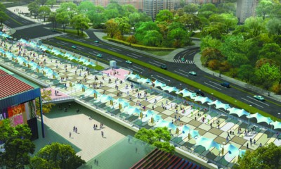 從效果圖來看,世博軸及高架人行平臺宛如一道“彩虹”,將浦西園區內室外公共活動空間、園區巴士站點、場館及展館入口等待區等串聯起來,成為重要的人行通道。項目由世博軸和弧形高架平臺兩部分組成,其中高架人行平臺橋面將設置移動綠化、裝飾遮陽篷等設施。工程計劃于2009年6月建成。