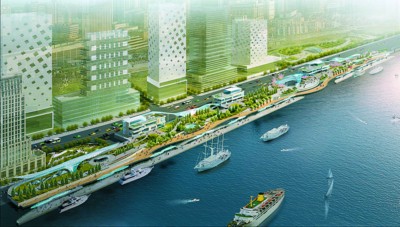 作為新的公共濱江休閑場所的十六鋪地區,綠化率將達到52%,如同一枚綠鉆鑲嵌在黃浦江這一城市腰帶上。記者注意到,十六鋪項目地處黃浦江彎道西側,這一地理位置十分獨特,今后游客在親水平臺上不僅能覽盡對岸陸家嘴金融中心的全貌,而且還能近距離欣賞浦西老外灘萬國建筑群,將270°“無敵”江景盡收眼底。
