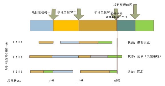 以子項目里程碑作為進度管理的基礎,是基于我們對項目結構分解的應用單純從技術交付的思維來進行規劃的結果。最大的問題是項目經理缺乏一個全面的項目進度視野,同時各子項目里程碑間的關系沒有辦法在進程中連接起來,在最后階段需要進行整合的時候才發現各子項目的最終交付未能達到預期理想,必須進行修改后才能完成項目交付。這也是大部分項目經理認為在項目管理知識應用上最難把握項目進度的主要原因。