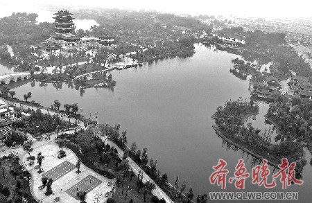 據有關數據,大明湖總庫容量擴建后為120萬立方,而高峰期四大泉群一晝夜涌水量是40萬立方,其中進入大明湖的每天約有20萬立方,也就是說,理論上6天湖水即可循環一遍,實際上比這要慢一些。另據統計,擴建改造后的大明湖和護城河沿岸老城區占我市老城區總量的1/3左右,“四面荷花三面柳,一城山色半城湖”經典再現。