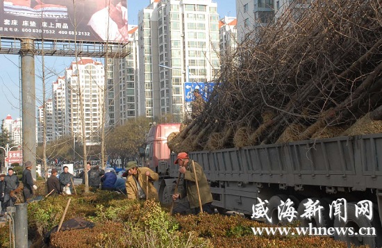 12月14日,市區(qū)海濱路、青島路、世昌大道、文化路今冬明春綠化工程啟動,這是當(dāng)日上午,園林工人在青島路綠化帶內(nèi)栽植景觀樹。