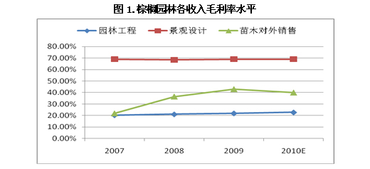 近年來,隨著房地產市場競爭的加劇以及園林設計理念的進步,單位土地面積園林造價發生了很大變化。根據華創證券市場調研結果顯示,中檔園林市場單位土地面積園林造價由2005年的100-200元,增長到2010年的250-350元。而其經驗數據顯示,單位建筑面積園林造價提升10元,房屋售價通常能夠提升500元。因此,地產開發商通過提高園林綠化投入,可以經濟、有效地提升地產產品的附加值,從而達到提高產品競爭力的目的。