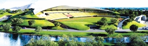 在現(xiàn)場(chǎng),記者看到了體育公園體育場(chǎng)效果圖,體育場(chǎng)建筑造型宛如一塊紅邊綠色地毯裝點(diǎn)著西區(qū)。