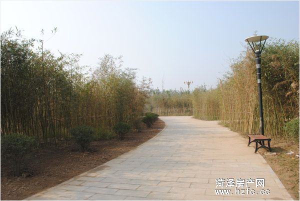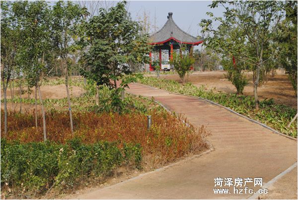從單縣湖西財富廣場往南,沿著筆直的東溝河河道,向南行,經過蜿蜒的小徑和高低錯落的小丘,便來到生態公園。