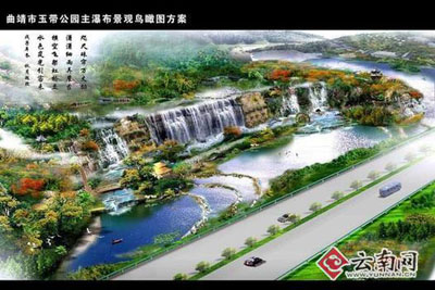 今后,從昆曲高速公路進(jìn)入曲靖的各地游客,您見(jiàn)到的將不只是高速路上那枯燥的廣告牌和兩側(cè)相繼出現(xiàn)的交通標(biāo)志牌,在距離曲靖收費(fèi)站以西1.5公里處,全堰幅寬90米,最大跌落高度為23米的玉帶公園瀑布群將猶如一幅仙境美圖躍入您的眼簾。