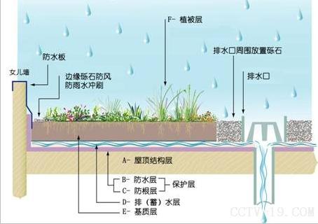 保護層包括防水層和防根層,有時兩者合而為一。保護層主要有兩個作用,防水和防止植物根系的穿透,有時分為防根層和防水層,有時合二為一。對于保護層的要求,除了防止雨水和灌溉水的滲入,也要求防水層能長時間抵抗植物根系的穿透能力。