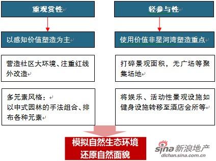 星河灣偏重景觀觀賞性(即感知價值),而景觀參與性(即使用價值)為次要。