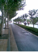 路中央隔離帶安裝了特色設(shè)計的道路燈柱,既美觀,又達到照明效果。為了減低道路的噪音,小區(qū)道路采用比常規(guī)道路降,80%的特殊工藝鋪設(shè)路面,標準超過市政標準,連沙井蓋都被細心的隱藏起來。