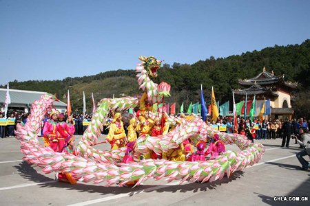 最新挖掘整理體現普陀山文化特色的吉祥如意龍在開幕式上進行了舞龍表演。普陀山學校一群小學生扮成善財童子和龍女形象,手持荷花,分則鮮花爛漫,合則花龍起舞,贏得陣陣掌聲。表演結束后,錢紹武和戒忍大和尚為吉祥如意龍點睛。