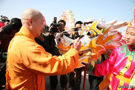 普陀山全山方丈戒忍大和尚為吉祥龍點睛