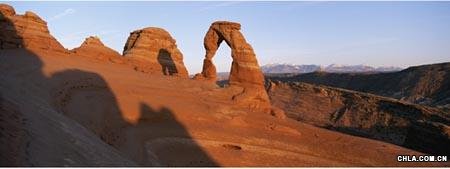 這座高52英尺的奇特結(jié)構(gòu)是眾所周知的精致拱門(mén),它是猶他州拱石國(guó)家公園中最著名的標(biāo)志物之一。風(fēng)蝕將最初的沙巖吹走,最后僅剩下一個(gè)拱形結(jié)構(gòu)屹立在原地。這座公園內(nèi)的其他拱門(mén),例如景色拱門(mén)和雙拱門(mén),也是以相同的方式形成的。