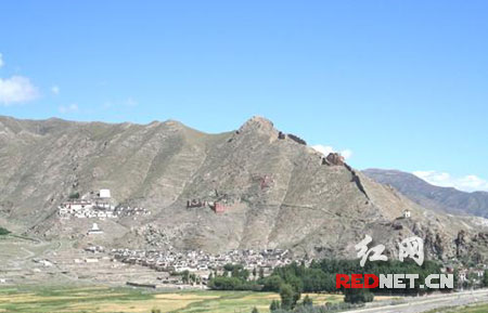 我乘坐的豐田吉普車沿著山南人民的母親河雅礱河向南行駛,河谷周圍是一望無際的青稞和小麥,在微風(fēng)的吹拂下麥浪翻滾,散發(fā)著沁人心脾的芳香,就像是在向人們訴說豐收在望的喜訊,又似乎在不停的招手歡迎我們的到來。從澤當(dāng)鎮(zhèn)南行20公里,便到了吐蕃王朝的故都瓊結(jié)縣。