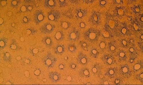 6、從飛機(jī)上看下去,在納米比亞的納米布沙漠上好像讓人看到了精美的圓圈或是無(wú)的補(bǔ)丁。