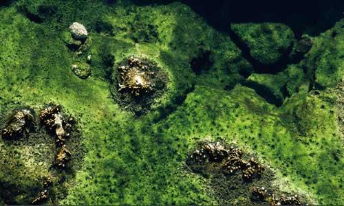7、在新西蘭溫泉池中的光合作用細菌能吸收二氧化碳并且釋放氧氣。