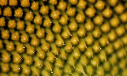 8、露珠附著在盤旋成了向日葵花朵式的小花上。