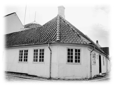 安徒生故居是一棟低矮的尖頂房子,坐落在一條古樸而狹窄的街道旁。