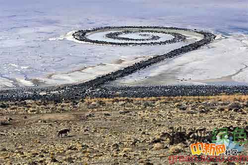 7.螺旋形防波堤,猶他州。大地藝術螺旋形防波堤,位于布里格姆以西30英里處,在大鹽湖的北部。這個特殊的雕塑由藝術家羅伯特·史密森于1970年用玄武巖和泥土創造而成。螺旋長1500英尺(450米),一直延伸到湖深處。之后,由于湖面上升,這個螺旋形防波堤沉于水下,1999年又重出湖面。