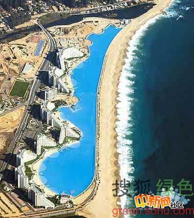 6.世界上最大的游泳池,智利。世界上最大的戶外游泳池位于智利的海濱城市阿爾加羅沃。這個人工游泳池是用附近太平洋的水來填滿的。據吉尼斯世界記錄,這個于2006年12月竣工的游泳池長3324英尺(990米),在2007年被評為世界上最大的游泳池。