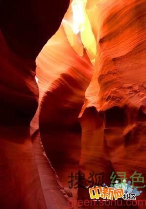 10.下羚羊峽谷,亞利桑那州。位于亞利桑那州南部鮑威爾湖邊上的下羚羊峽谷是由風沙和湖水雕琢沙巖而形成的一種很抽象的形狀。從上面看,峽谷和亞利桑那其他峽谷沒有任何區別,但是從底部看,你會覺得自己深處一件很精美的藝術品中。峽谷的有些地方很狹窄,只允許一人通過。