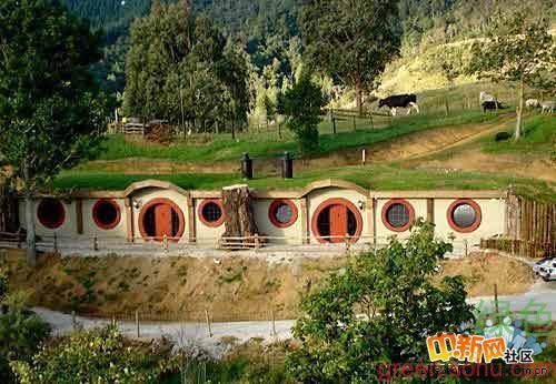 17.霍比特旅館,新西蘭。霍比特旅館是伍德萊公園的一部分,位于懷托摩螢火蟲洞(Waitomo Cave)附近,這個公園專門收集新西蘭奇形怪異的小屋。每個小屋都有形似艙口的窗戶。