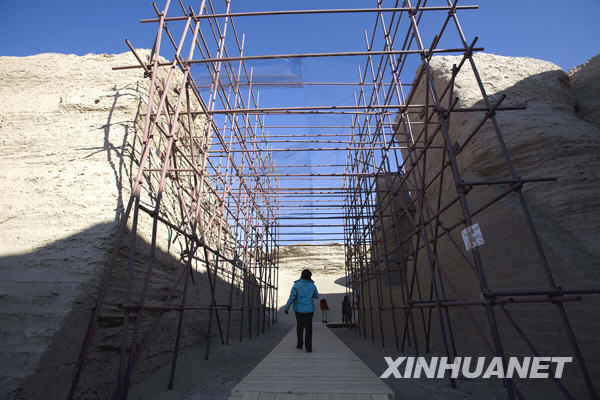 10月20日在內蒙古額濟納旗黑城遺址內拍攝的保護性參觀棧道。新華社發(張曉理 攝)