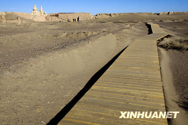 當日,位于內蒙古額濟納旗的黑城遺址城內保護性參觀棧道鋪設安裝基本完畢,標志著黑城遺址搶救性維修保護工程已接近尾聲。新華社發(張曉理攝)
