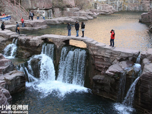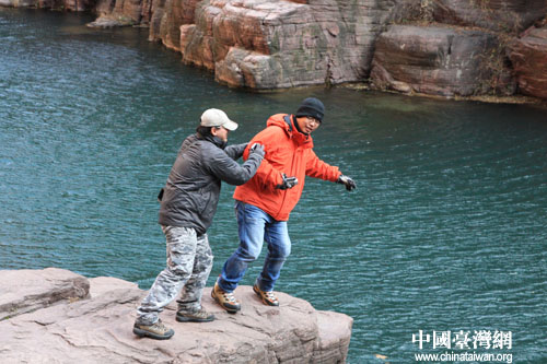 中國臺灣網12月2日河南消息 “走進華夏古都、聚焦中原崛起”臺灣媒體采訪團于昨天參觀采訪河南省云臺山風景區。景區內紅石峽奇石飛瀑、流水淙淙的優美風光吸引了臺灣媒體的目光。