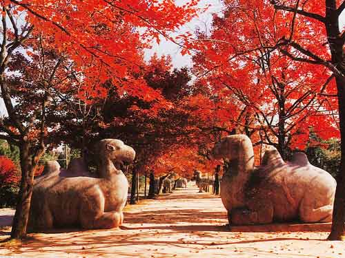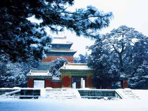 十三陵位于北京市昌平縣北天壽山的南麓,是明朝遷都北京后十三位皇帝陵墓的總稱。陵區面積達40多平方公里,朝宗河縈繞東去,龍虎山東西對峙,景色秀麗,氣勢宏偉。