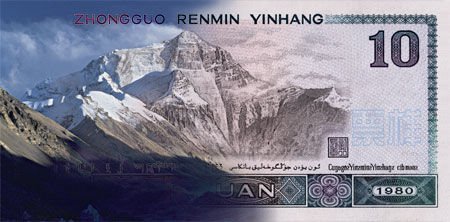 珠穆朗瑪峰的地位正如它的高度,是永遠不能被忽視的。第四套人民幣中10元的紙幣選擇它做背面圖案。珠穆朗瑪峰位于我國和尼泊爾交界的地方,從中國境內眺望珠峰,它像一座金字塔,威嚴地聳立在一排雪峰之間。這張錢幣整體色調以藍色為主,設計它的時候就考慮到珠峰適合這種冷色調來表現。