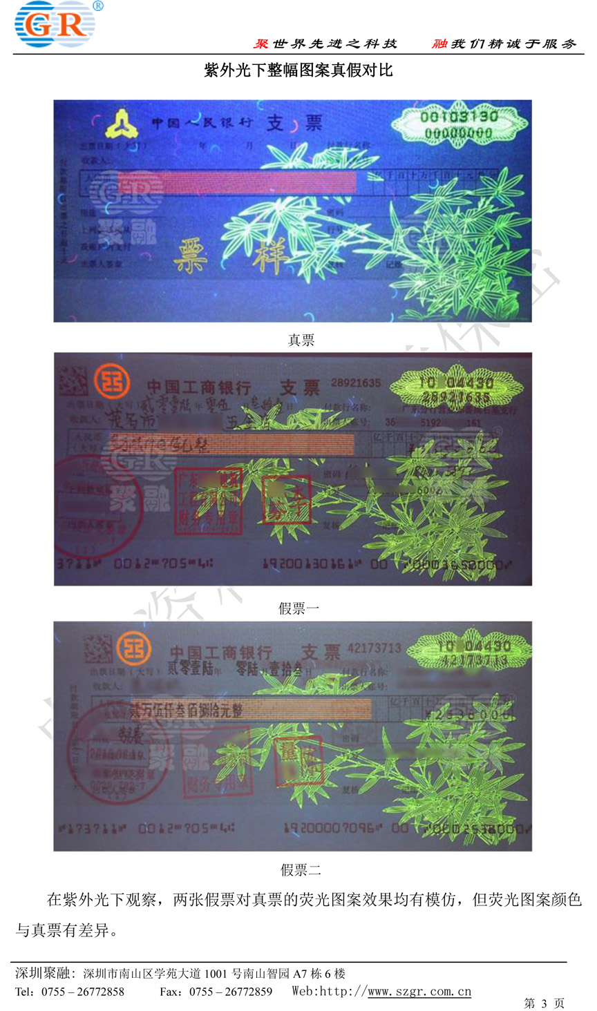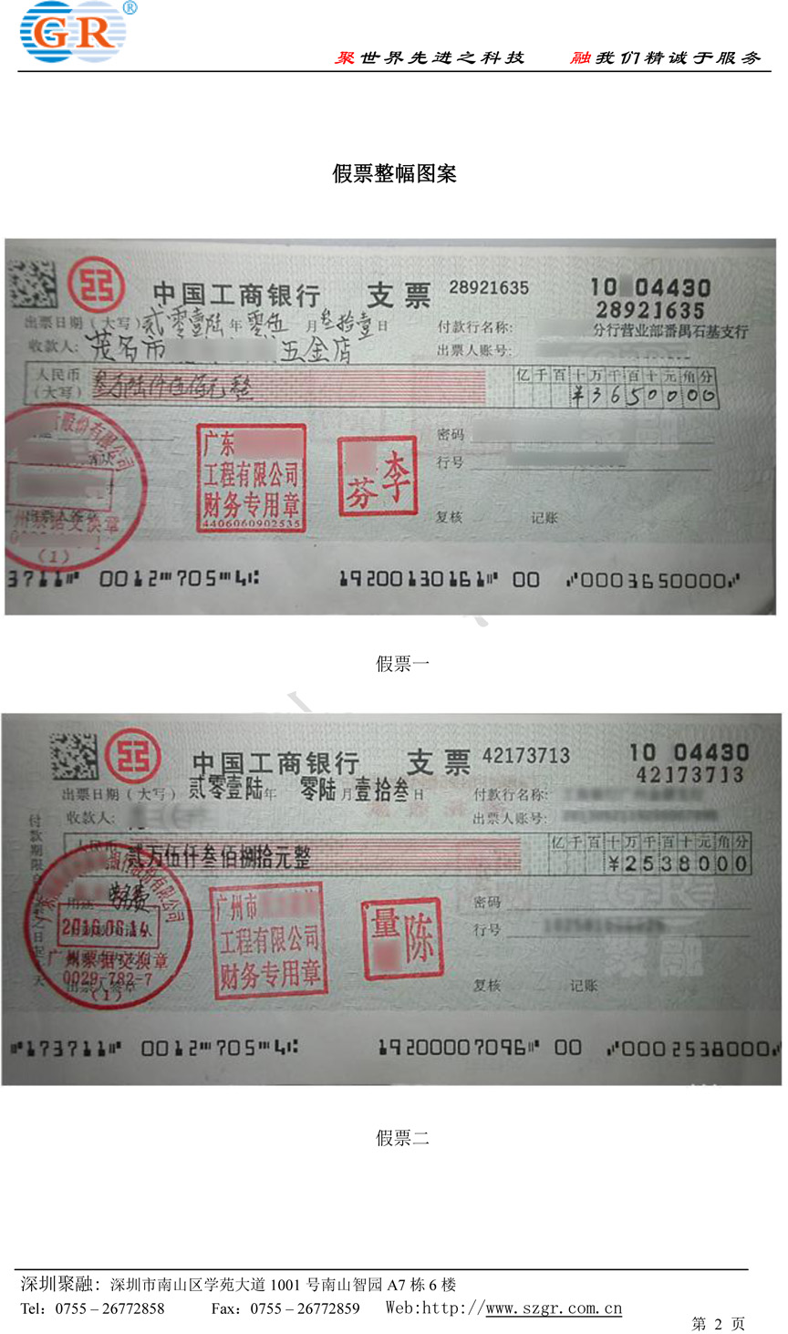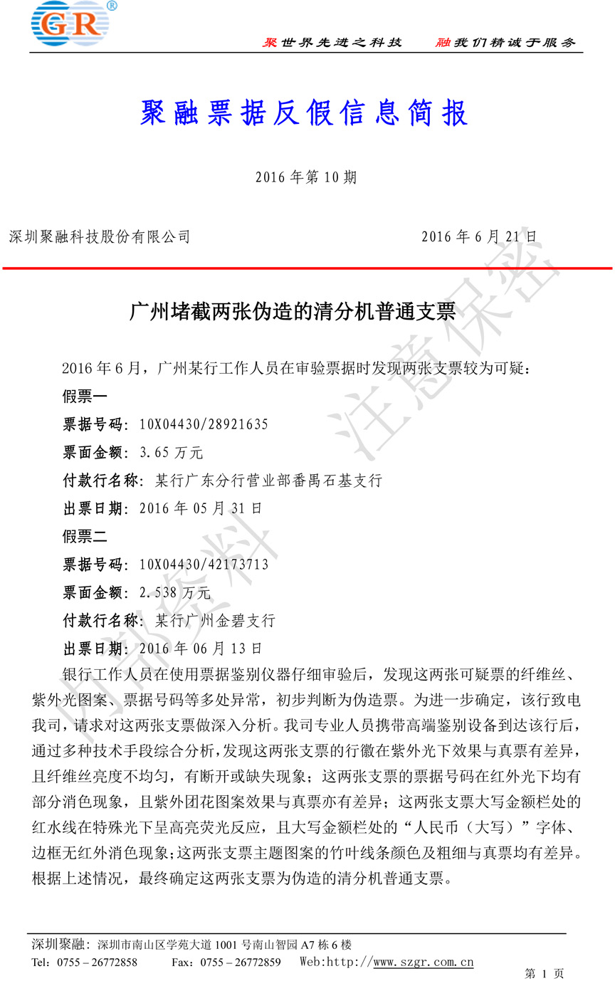 廣州堵截兩張偽造的清分機普通支票