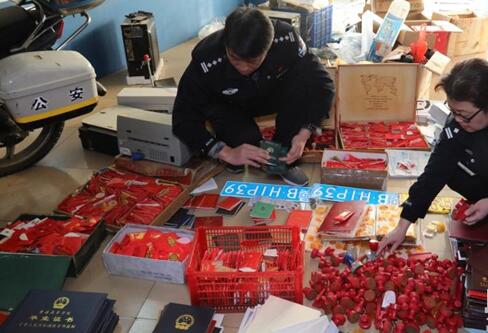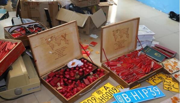1月14日,佛山鐵路警方根據群眾線索舉報,在廣州市海珠區一出租屋內當場抓獲涉嫌偽造印章、證書的犯罪嫌疑人兩名段某(28歲)、段某某(19歲)均系廣西人,繳獲假冒偽造公章218枚,鋼印模板2426枚,假冒工作證、身份證、軍官證、資格證、學位證等各類假證(含半成品)12028余本,假車牌8副以及作案工具電腦、壓模工具各2臺,打印機7臺,掃描儀1臺。目前,案件正在進一步審查之中。