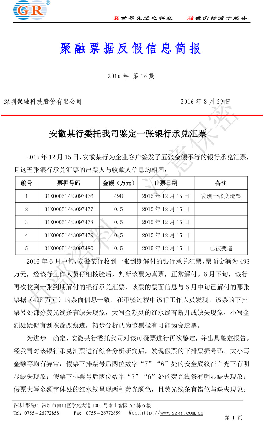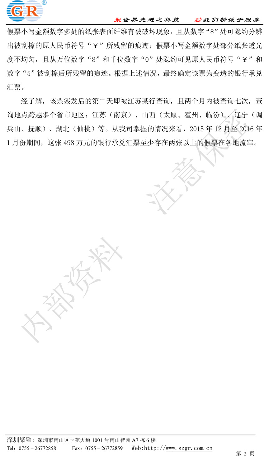 您當前所在位置: 首頁 聚融e訊 案例簡報 反假簡報 安徽某行委托我司鑒定一張銀行承兌匯票
